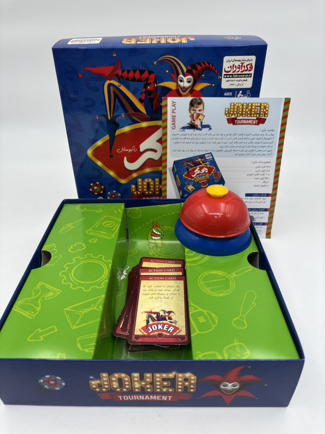 بازی جوکر / Jocker بازی فکری جذاب و گروهی می باشد که به تازگی در قالب نمایش خانگی توسط بازیگران و هنرمندان کشورمون درآمده و فضای شاد و مفرحی برایشان به ارمغان می آورند .اسم دیگر این بازی آخرین فردی که می خندد است.اکنون ما بازی تحت همین عنوان طراحی و تولید نموده ایم تا مردم عام و خاص بتوانند در دورهمی ها توسط وسایل ارائه شده خنده بر لب داشته باشند و از کنار هم بودن لذت ببرند .
