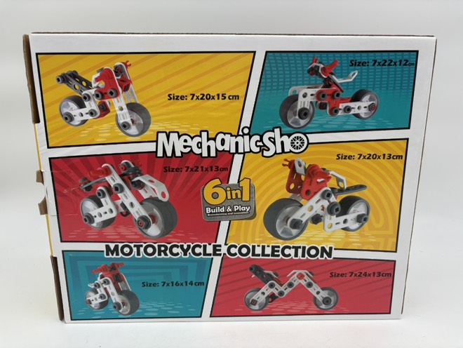 بازی ساختنی میکانیک شو «مجموعه موتور سیکلت»، چند مدل، 6 در 1، همراه با ابزارهای جذاب و مخصوص، 6 مدل از بی نهایت طرح با راهنمای آموزش گام به گام، بدون هیچ محدودیتی بی نهایت طرح بسازید و از ساخت و ساز لذت ببرید، لذت بازی کردن با قطعات با کیفیت و در نتیجه طول عمر بیشتر اسباب بازی. تعداد مدل های قابل ساخت از روی راهنما 6 مدل می باشد.