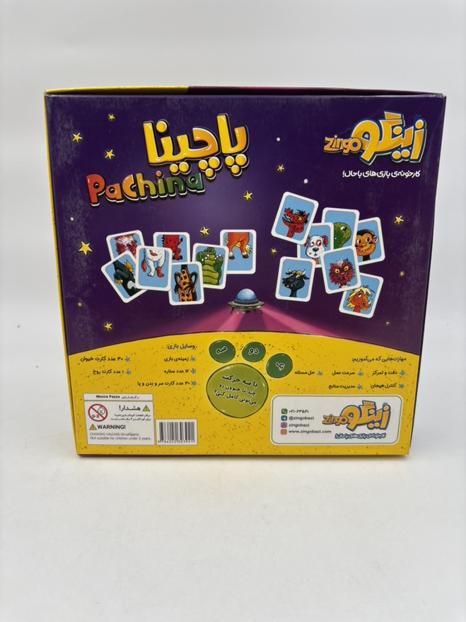 اگر به دنبال یک سرگرمی هستید که کودکان خود را با حیوانات اشنا کنید بازی فکری پاچینا بهترین انتخاب است. در این بازی با تقویت مهارت تمرکز افرادباید با کارت های سروبدن پا حیوان موجوددر زمین بازی را کامل کنند و هر فردی این کار را زودتر انجام دهد امتیازمی گیرد.