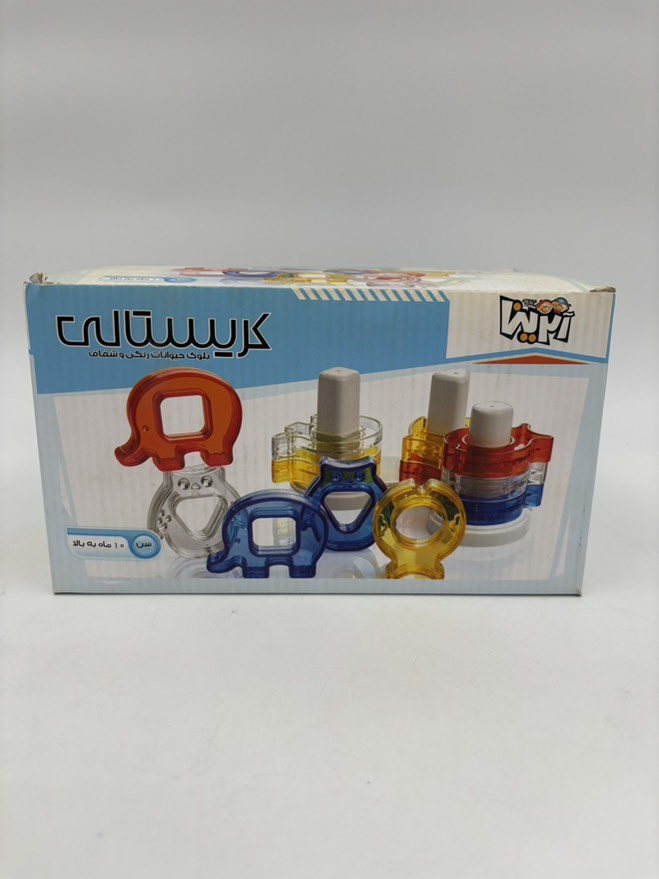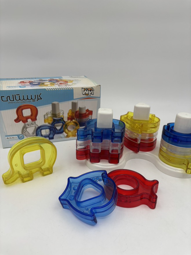 در بازی فکری کریستالی 3 مدل از حیوانات شفاف،یک پایه جایگذاری خمیده و کارت های بازی وجود دارد.در بازی کریستالی حیوانات اشکال هندسی را در وسط خود جای دادند.از این جهت چهار کارت دورو بازی به منظور مهارت افزایی در این محصول قرار داده شده است.دراین محصول قطعات طوری طراحی شده است که امکان چیدمان عمودی و افقی را برای کودک فراهم میکند.لازم به ذکر است که این بازی از مواد پلاستیکی و مناسب برای کودکان تهیه شده است.