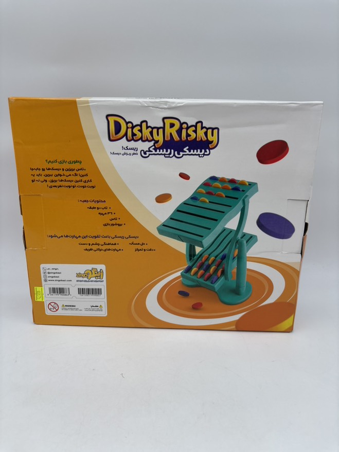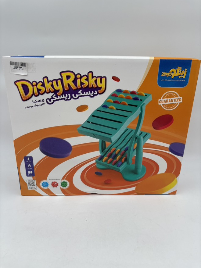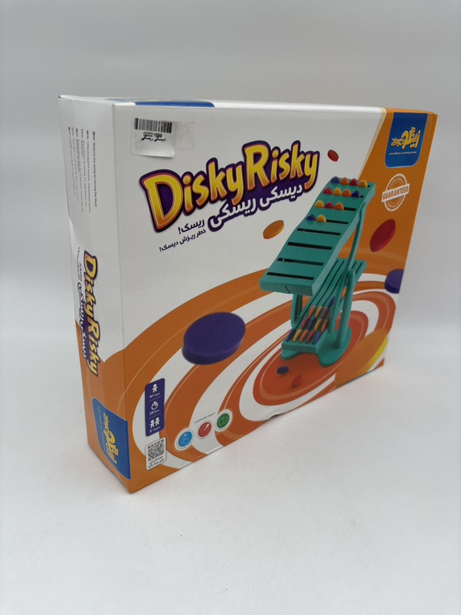 برای شروع بازی دیسکی ریسکی، نفر اول تاس میریزه و هر طرف تاس که رو شد، طبق اون عمل میکنه. به همین ترتیب نفر بعدی تاس میریزه. بازیکنها تو هر حرکتشون باید مواظب باشند که تاب واژگون نشه و مهرهها نریزند.