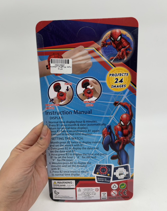 ساعت عروسکی پروژکتور دار.ساعت دیجیتالی پروژکتور دار یه گجت خیلی باحال و دوست داشتنی با شخصیت های متفاوت کارتونی برای بچه هاست این ساعت فوق العاده باکیفیت و رنگارنگه و این ویژگی هاست که تبدیلش کرده به بهترین هدیه برای کودکان 3 سال به بالانحوه کار ساعت مچی ساعت به راحتی با سوراخ های قابل تنظیمی که دارد روی مچ دست کودک بسته می شود. ابتدا باید درب ساعت را باز کنید تا بتوانید ساعت دیجیتالی و تقویم را بر روی صفحه مشاهده کنید.2 دکمه بر روی صفحه تعبیه شده است که با استفاده از آن ها می توانید ساعت را به درستی تنظیم کنید و یا از روی ساعت دیجیتالی بر روی تقویم سوییچ کنید.این ساعت مدل پروژکتوری است و 24 تصویر درون آن ذخیره شده است، پس ابتدا محیط را تاریک نمایید و با زدن دکمه کنار ساعت تصاویر کارتونی پروژکتوری را بر روی دیوار تغییر دهید.لطفا توجه داشته باشید قبل از استفاده حتما از اتصال باتری مطمئن باشد و کاغذ قطع اتصال باتری را از زیر ساعت بردارید تا بتوانید تصاویر پروژکتوری را به صورت واضح و جذاب ببینید