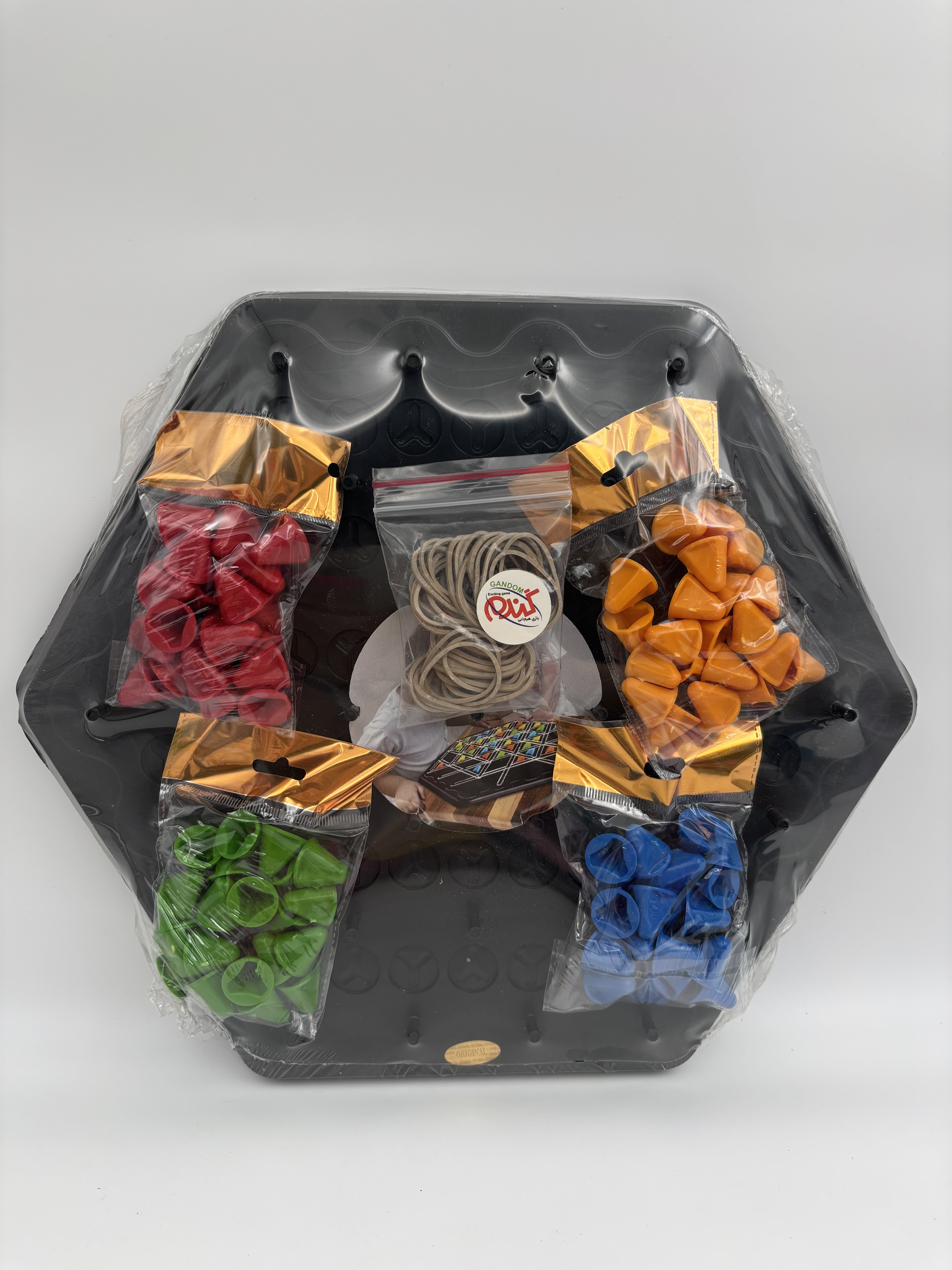 - مشخصه کلیدی: صفحه بازی به صورت یک شش ضلعی بزرگ است که از تعداد زیادی مثلث کوچک تشکیل شده. حرکت مهرهها (که معمولاً به شکل دیسک هستند) روی رأس این مثلثها انجام میشود.