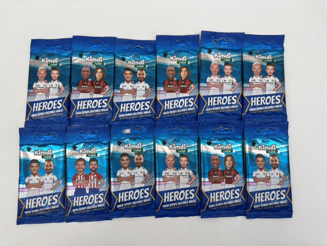 بسته های 12 تایی کیمدی فوتبال 2026 طرح Heroes برای اون هوادار دو آتیشه فوتبال که میخواد کلکسیونر بشه ... شامل ۲ کارت کلکسیونی حداقل یکی از کارتها از نوع Advance، Premium یا Signature دارای ۱ مینیفیگور بازیکن ۲ برچسب کارتی ویژه، ۱ بروشور اختصاصی نسخه HEROES * QR Code پشت کارتها برای تماشای ویدیو بیوگرافی بازیکنان