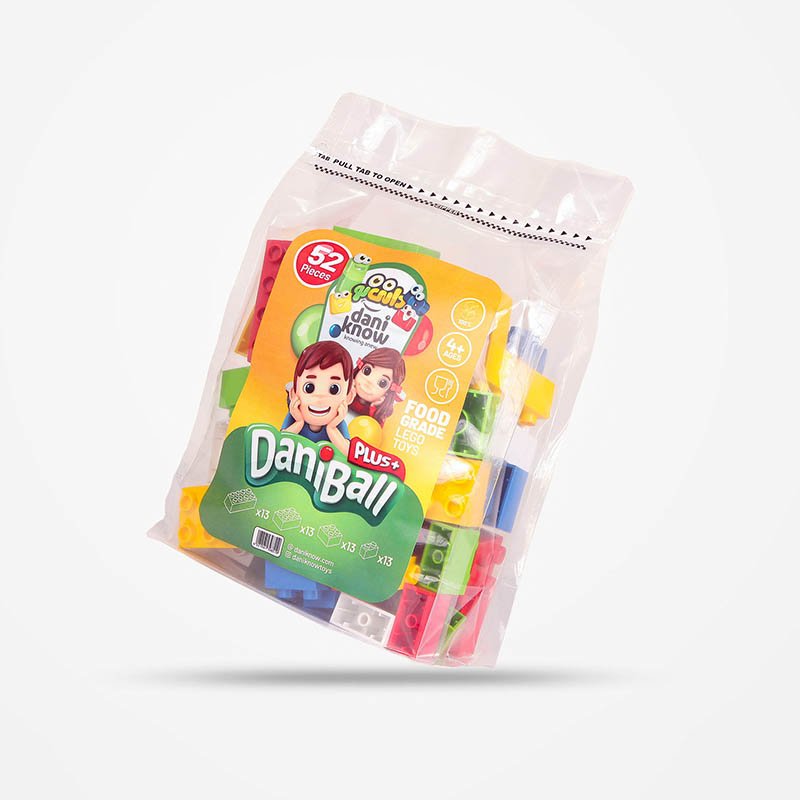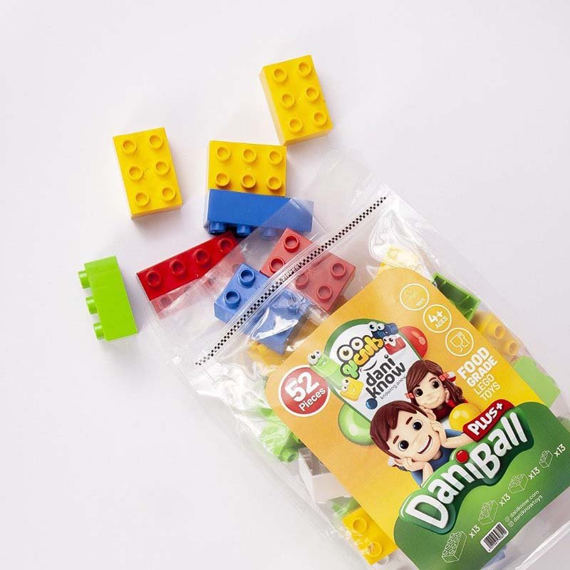 دانیبال پلاس 52 قطعه ای شامل قطعه لگو و بلوک های رنگی در اندازههای مختلف که با روی هم چیدنشون بچه ها شکل های خلاقانه و جذابی میتونن بسازند