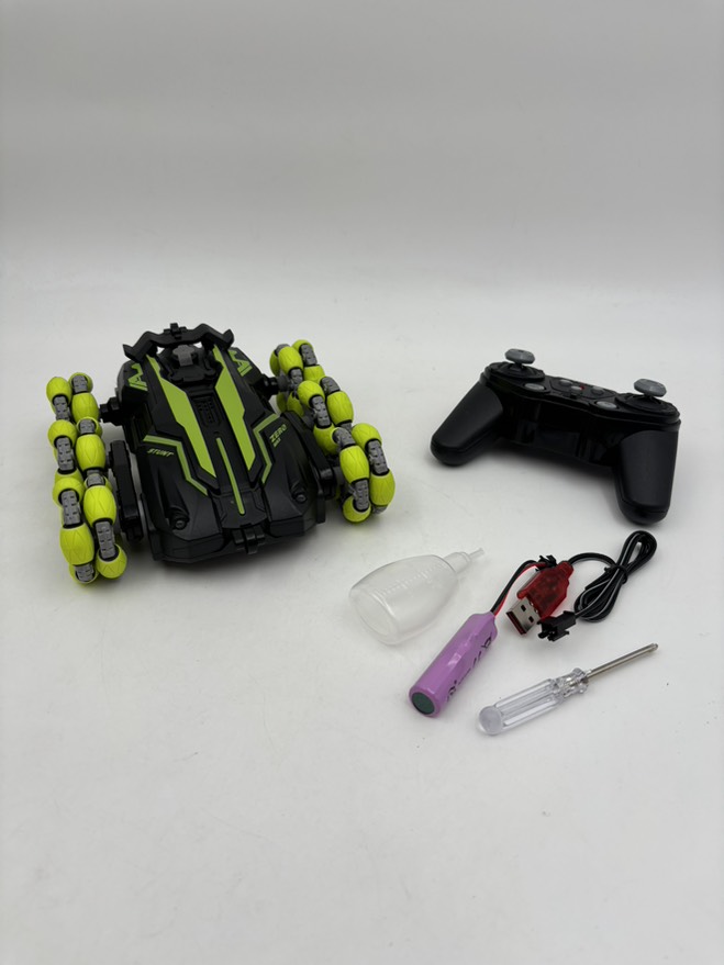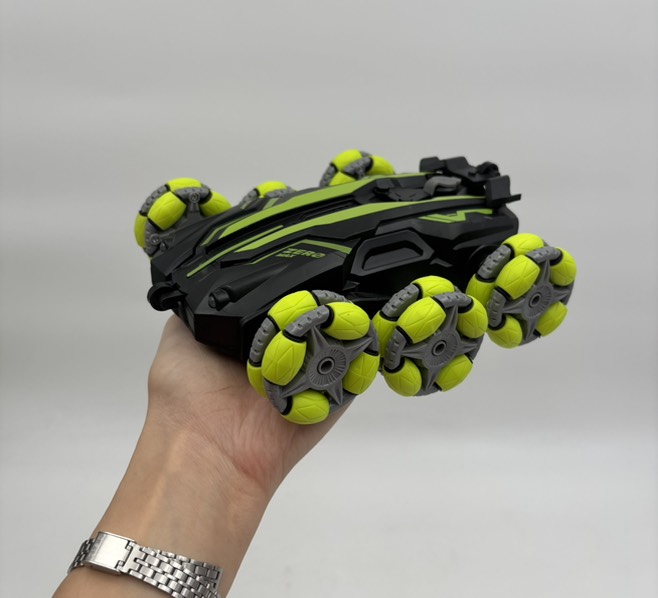 ماشین بازی کنترلی هشت چرخ که به تازگی به بازار ایران آمده.در مدل LH C060 ماشین و کنترل از راه دور پس از روشن شدن به طور خودکار مطابقت می یابند، پاسخ حساس از رقابت چند نفره بدون تداخل را پشتیبانی می کند.دارای محور 4WD، کنترل آسان: ماشین بدلکاری در مجموع چهار WD دارد، دکمه سمت چپ حرکت رو به جلو و عقب را کنترل می کند و دکمه سمت راست حرکت چپ و راست را کنترل می کند. شما می توانید مسیر حرکت ماشین را به دلخواه کنترل کنید. این ماشین شیرینکاری میتواند به حرکات چرخشی 360 درجه در محل و رانندگی 360 درجه در سراسر طول بازی دست یابید. قدرت مانور بالا، باعث سرگرمی بیشتر مسابقه ماشین اسباب بازیست! چرخش بازوی چرخ 360 درجه، دستیابی به انواع سبک های شیرین کاری: لاستیک های جلو و لاستیک های عقب می توانند به این معنی که لاستیک ها می توانند به دلخواه بالا و پایین بچرخند.ماشین اسباب بازی دارای حالت سر بالا، حالت ایستادن روی دست، حالت خارج از جاده و بازوهای قدرتی انتقال چرخ به شکلی به بالا حرکت میکنند که میتوانید هر موانعی را از پیش رو بردارید و از پله ها بالا بروید !عملکرد عالی کاربرد چند زمینی: لاستیک ها به خودرو اجازه می دهند 360 درجه بچرخد و به صورت جانبی حرکت کند. نیروی چهار محرکه و لاستیکهای کشش غلتکی منحصر به فرد میتواند ماشین اسباببازی را به اشکال مختلف برای سازگاری با زمینهای مختلف تبدیل کند. با کنترل چرخش بالا و پایین لاستیک های جلو و عقب به راحتی از زمین های مختلف عبور کنید، بر موانع جاده ناهموار غلبه کنید و به راحتی از پله ها بالا بروید.عملکرد کامل، چراغ جلو و اسپری آب، نمایش: یک دکمه برای روشن کردن چراغ ها. پس از اضافه کردن آب با قطره چکان متصل، حالت اسپری را با یک کلید روشن کنید تا در هنگام شتاب گیری خودرو، اسپری اگزوز شبیه سازی شود و روند شتاب گیری ماشین اسباب بازی واقعی تر شود! لذت کل روند بازی را افزایش دهید و سرعت و اشتیاق را تجربه کنید. عملکرد نمایش یک دکمه به خودرو اجازه می دهد تا به طور خودکار روش های مختلف کنترل را نشان دهد.