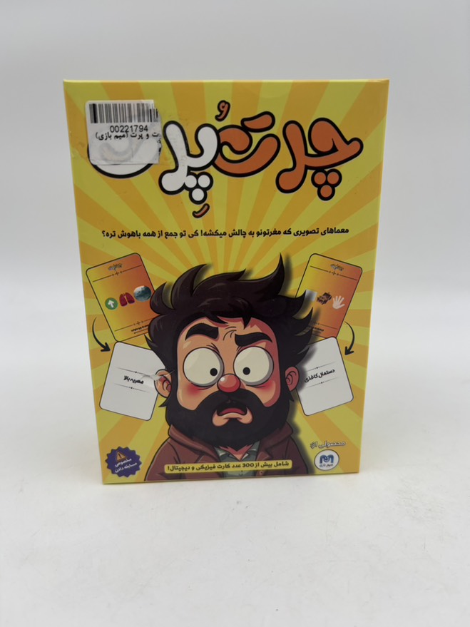 آیا بهدنبال یک بازی هیجانانگیز برای دورهمیهایتان هستید؟ با "چرت و پرت" همه چیز خندهدار و جذاب میشود! این میم بازی فوقالعاده، هوش و خلاقیت شما را به چالش میکشد و لحظات شادی را برای شما و دوستانتان فراهم میکند. خرید کنید و با این بازی سرگرمکننده، مهمانیهای خود را به اوج برسانید!