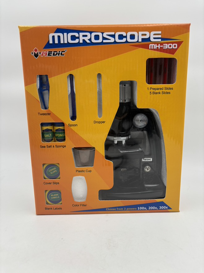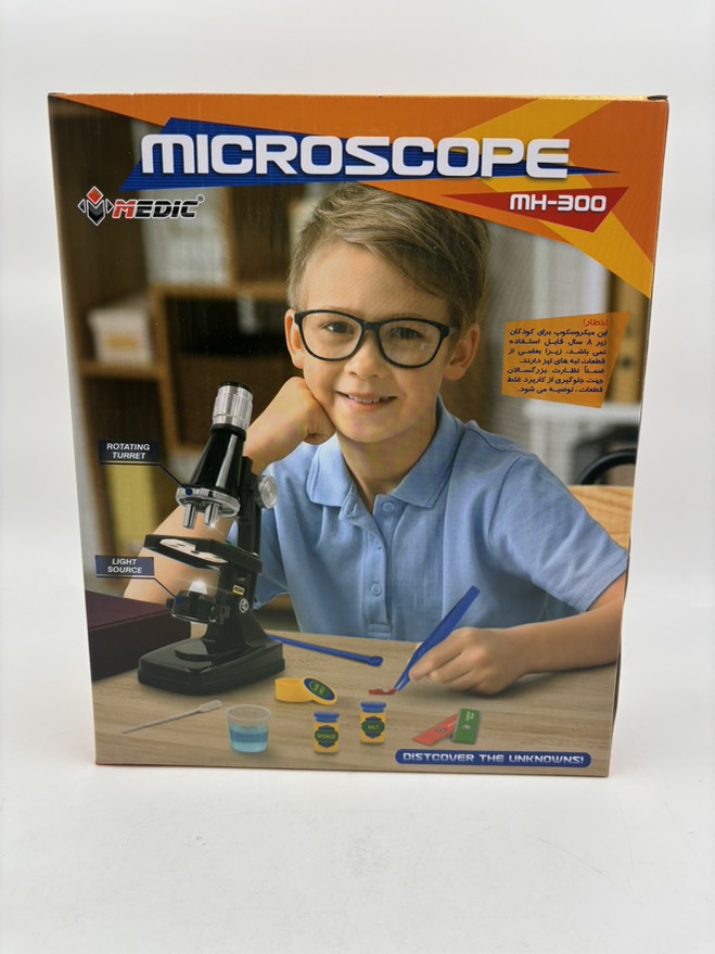میکروسکوپ آموزشی مدل MP-A300 از جنس پلاستیک و فلز با ابعاد بسته بندی 27.5 * 8.5 * 22.5 سانتی متر مناسب برای رده سنی 8 سال به بالا است. این محصول شامل یک عدد فیلتر رنگی - دارای چهار عدد اسلاید آماده و خالی - دارای لامل و برچسب لامل - دارای یک عدد قطره چکان - دارای نمونه eosin است. میزان بزرگنمايی این میکروسکوپ تا حداكثر 300 برابر است. همچنین برای پژوهش و ماجراجويی دنيای ماده و ايجاد سرگرمي علمي طراحی گرديده است و مناسب جهت آموزش و آزمايش هاي كتاب هاي درسی و بهترين هديه براي كودكان و نوجوانان می باشد.