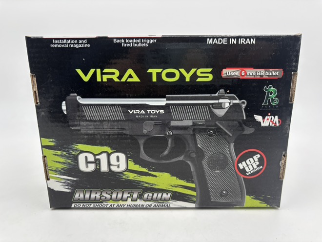 برخی از ویژگی های تفنگ فلزی C19: پرقدرت در شلیک با کیفیت برد پرتاپ 30 متر ساخته شده از روی نمونه ی واقعی جنس تیر پلاستیکی جنس بدنه فلز مقاوم در برابر ضربه مناسب برای شلیک از راه دور ابعاد 24x16x3٫5 سانتیمتر دارای وزن 360 گرم به انسان و حیوان شلیک نشود هدف بازی افزایش تمرکز, دقت و بالابردن مهارت دست ورزی است.