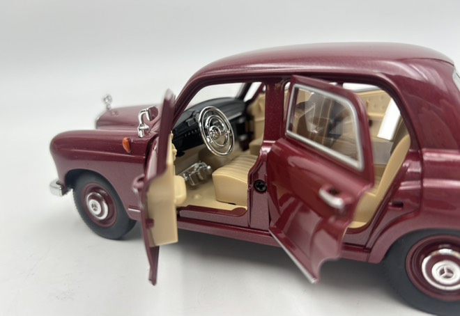 ماکت کلاسیک مرسدس بنز 180 (پونتون دهه 1950) سایز 1/24، کد 24001 با دقتی حیرتانگیز و جزئیاتی بینظیر طراحی شده است. این ماکت با کیفیت بالا، گزینهای ایدهآل برای علاقهمندان به خودروهای کلاسیک و کلکسیونرها است. فرصتی استثنایی برای تجربه نوستالژیک و افزودن به مجموعهتان!