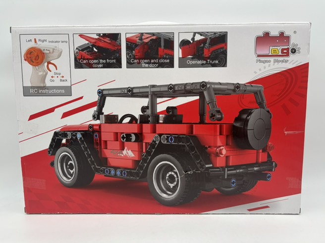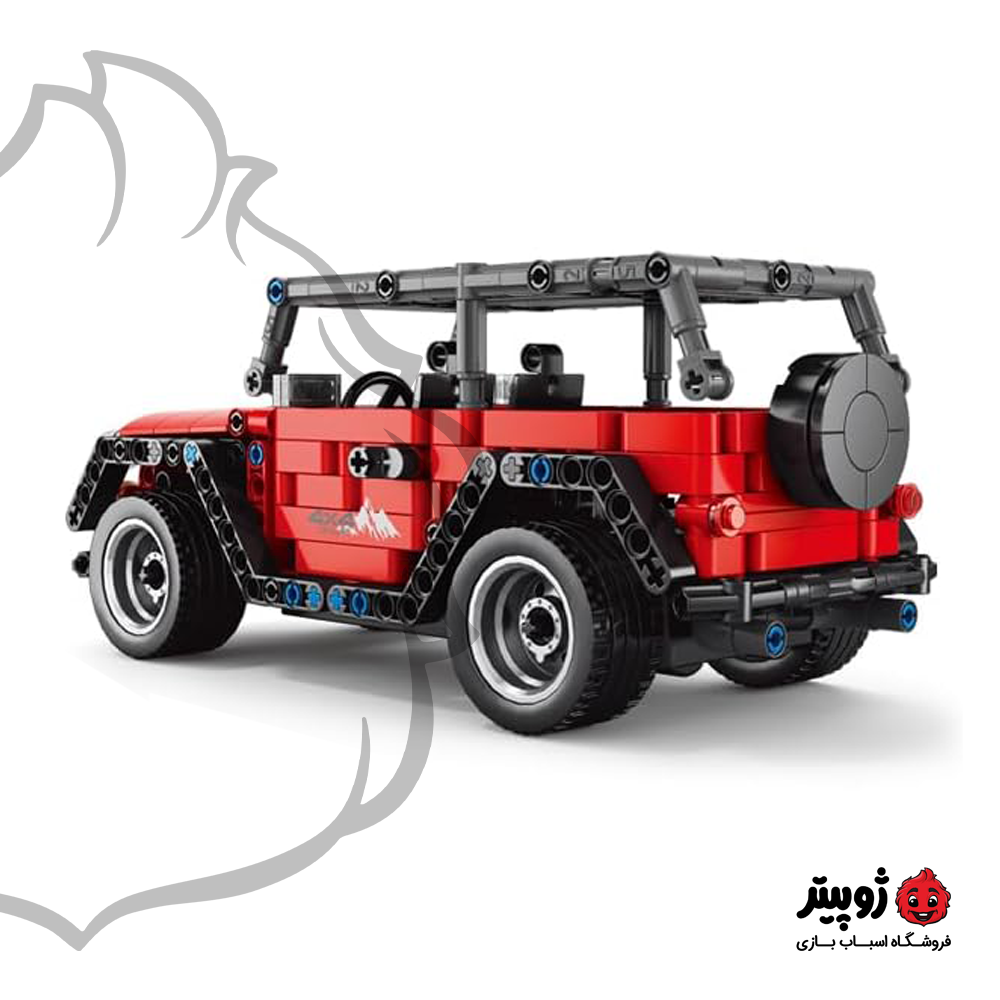 این لگو پسرانه به شکل بک ماشین آفرودی جیپ ساخته می شود. رنگ ماشین قرمز بوده و دارای طراحی ویژه برای جایگذاری کیت حرکتی است. از ویژگی های جذاب این محصول، قابلیت باز و بسته کردن درب های سرنشینان، کاپوت و قسمت عقب ماشین می باشد. ابعاد ماشین بعد از ساخت معادل 10 در 24 سانتیمتر و ارتفاع 10 سانتیمتر می باشد.