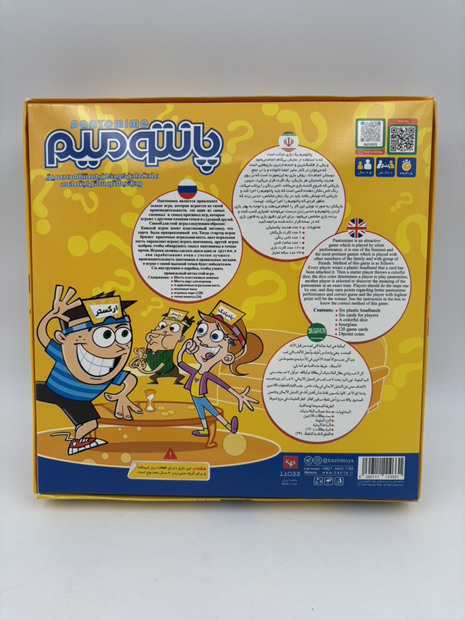 آمادهاید خنده و هیجان را به دورهمیهای خود بیاورید؟ بازی پانتومیم، بهترین انتخاب برای جمعهای دوستانه و خانوادگی است. با این بازی خلاقانه، لحظاتی پر از سرگرمی و رقابت را تجربه کنید. مناسب برای تمام سنین، این بازی نه تنها مهارتهای ارتباطی بلکه خلاقیت شما را هم تقویت میکند. سفارش دهید و شادی را به خانه ببرید!