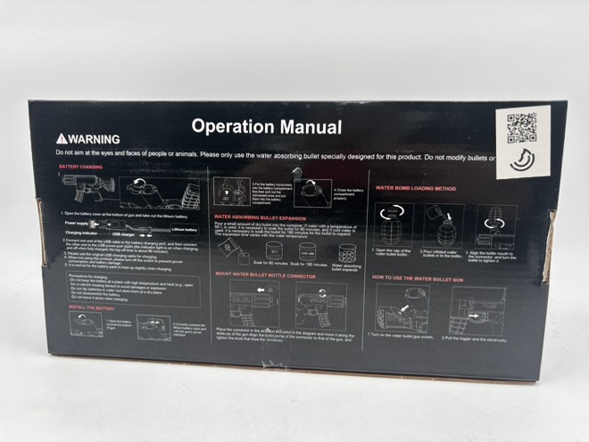 توجه داشته باشید به خاطر حالت ژله ای تیر ها، اصلا باعث آسیب به شخص یا اجسام نمی شود و حتی باعث لک شدن دیوارها نمی گردد. تیر ها باید ۴ ساعت در ظرف بزرگی از آب باشند که فضا برای بزرگ شدن به اندازه کافی داشته باشند. این تفنگ هم به صورت خودکار با باتری کار می کند و هم به صورت تک تیر به حالت مکانیکی کار می کند که دارای قدرت زیادی می باشد.تفنگ شارژی تیر ژله ای کامل بدون خطر حتی برای افراد بزرگسال هم مناسب است.