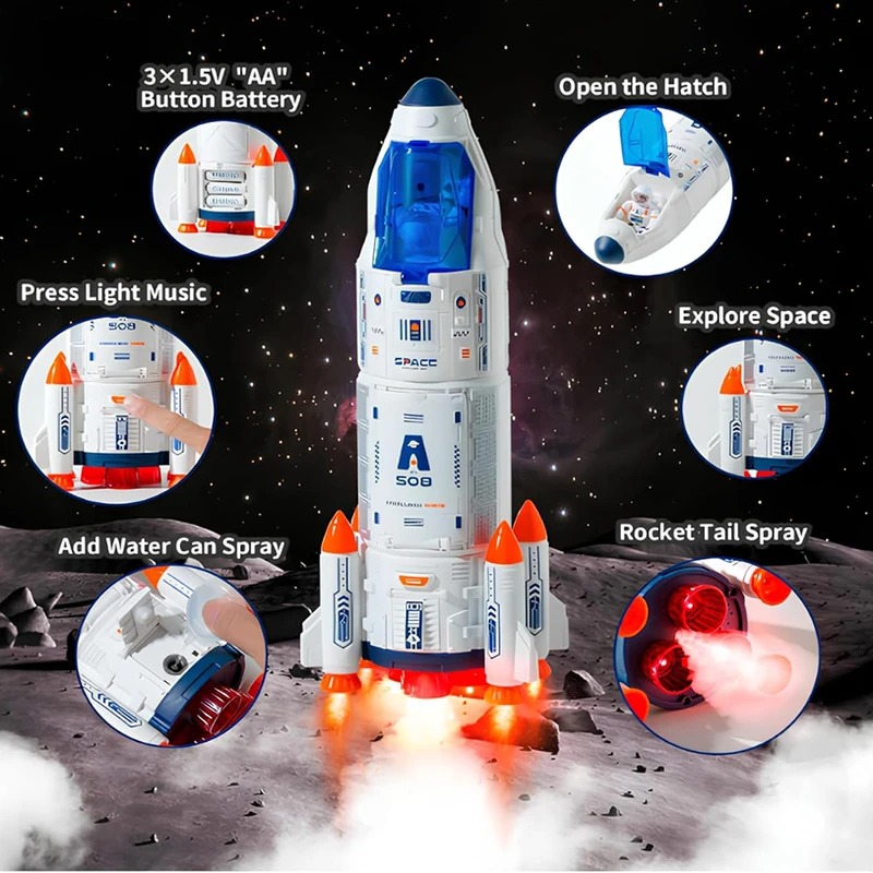 اسباب بازی مدل موشک فضاپیما طرح فضانوردان با اسکوتر یک اسباب بازی حرفه ای برای دوستداران فضا و فضانوردی است. این محصول یک موشک فضاپیما همراه با تعدادی فیگور فضانورد است که حسی واقعی از دنیای فضانوردی را به کودکان القا میکند. اسباب بازی موشک فضاپیما از جنس پلاستیک ساخته شده و برای کودکان بالای 3 سال مناسب است. ویژگیهای موشک فضاپیما این محصول یک اسباب بازی موشک فضاپیما است که قابلیتهایی مانند افکت صوتی صدای موشک فضاپیما دارد که حسی واقعی از بودن در فضا میدهد. علاوه بر آن، نورپرداری جذاب محصول بر یک تجربه ملموس در فضا میافزاید. این موشک فضاپیما دوزا بوده و وقتی روشن شود از پشت آن یک بخار آب بیرون میآید که حس دودزا بودن را به محصول میدهد. درب موشک فضانورد هم باز میشود و شما میتوانید فضانوردان را وارد کابین کرده و یا از آن خارج کنید.