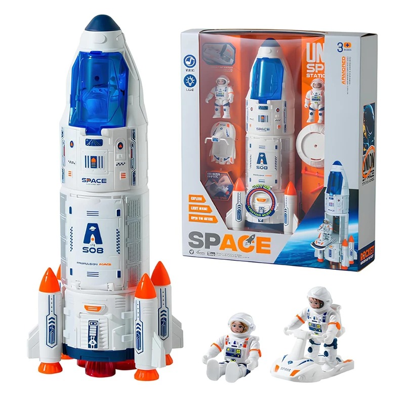 اقلام همراه موشک فضاپیما همراه این محصول دو عدد فیگور فضانورد کوچک دیده میشود که برای بازیهای واقع گرایانه کودکان شما با این محصول جذابیت بیشتری ایجاد میکند. همچنین یک عدد اسکوتر هم همراه این محصول دیده میشود که برای سوار شدن فضانوردان است. یک دیسک فضایی هم داخل بستهبندی محصول هست. بدین ترتیب کودک شما میتواند اکتشافات خود را با این فضانوردان و اقلام کامل آنها در فضایی خیالی آغاز کند و از بازی کردن با این محصول لذت ببرد.