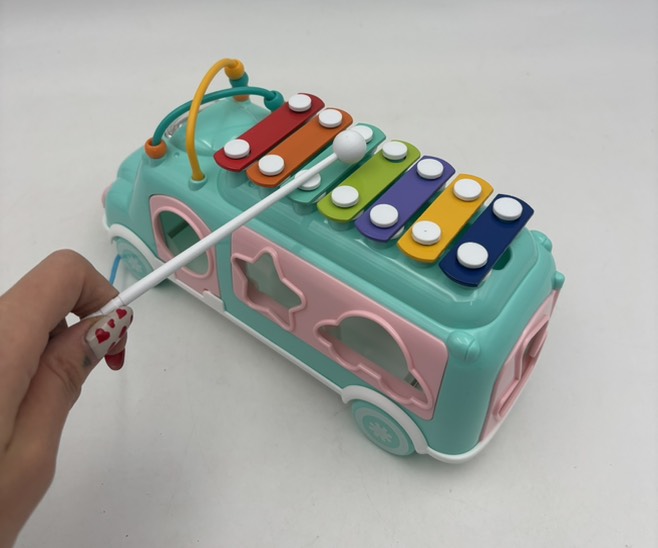 شامل یک اتوبوس بامزه دارای پازل اشکال و یک بلز بر روی سقف آن می باشد. اسباب بازی بلز با کلید های رنگارنگ باعث هماهنگی بین دست و چشم کودک شما می شود . کودک شما با استفاده از میله بلز و ضربه زدن بر روی کلیدهای پیانو شروع به نواختن می کند باعث افزایش مهارت دیداری و شنوایی کودک شما نیز می شود. و با قرار دادن پازل اشکال کودک نام رنگ ها، اشکال هندسی و وسایل نقلیه را می آموزد و موجب هماهنگی بین دست و چشم کودک و تقویت حافظه او نیز میشود