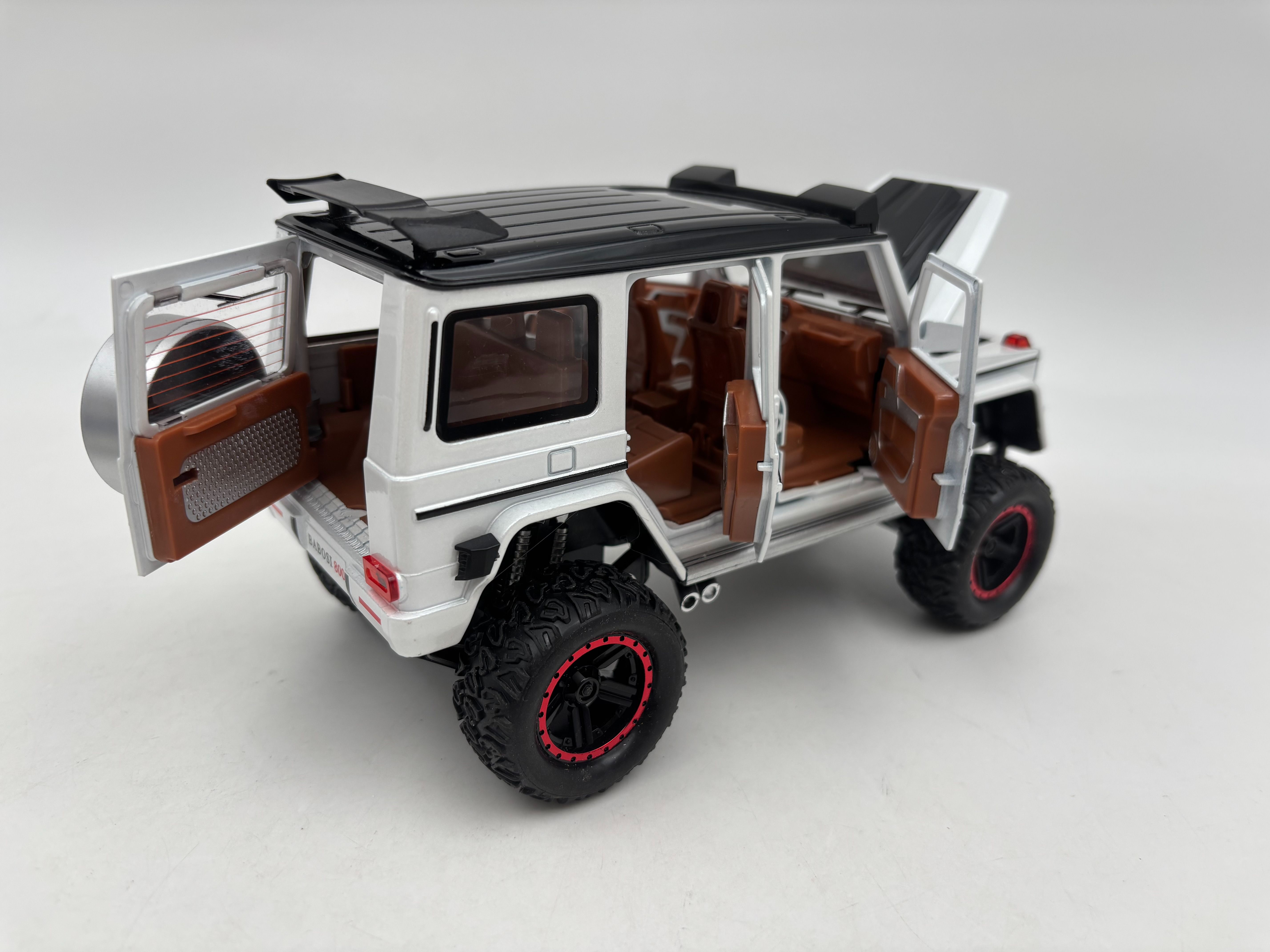 با ماشین فلزی بنز جی کلاس بارابوس سفید آفرود (کد 2410ای)، تجربه واقعی یک ماجراجویی بینظیر را به خانه بیاورید! این مدل با مقیاس 1/24، جزئیات خیرهکنندهای از طراحی اصیل بنز را به نمایش میگذارد. ایدهآل برای کلکسیونرها و علاقهمندان به خودروهای لوکس. همین حالا سفارش دهید و شکوه قدرت را احساس کنید!