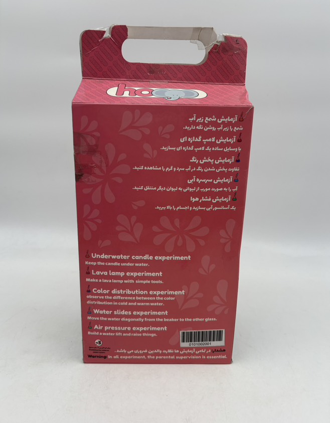 به کمک مجموعه علمی آموزشی هویولب کودک شما میتواند آزمایشات علمی مختلفی را به منظور یادگیری فرآیندها و مفاهیم علمی به شکلی ساده و قابل فهم، انجام دهد. این مجموعه شامل ۵ آزمایش به نامهای شمع زیر آب، لامپ گدازهای، پخش رنگ، سرسره آبی و فشار هوا میباشد. این آزمایشات به شکلی ساده و قابل اجرا طراحی شده است و کودک شما میتواند به راحتی در منزل آنها را انجام دهد. همچنین به منظور یادگیری بهتر کدهایی داخل بسته بندی قرارداده شده که با اسکن آنها به کمک تلفن همراه میتوانید به ویدئوهای آموزشی آزمایشات دسترسی پیدا کنید.
