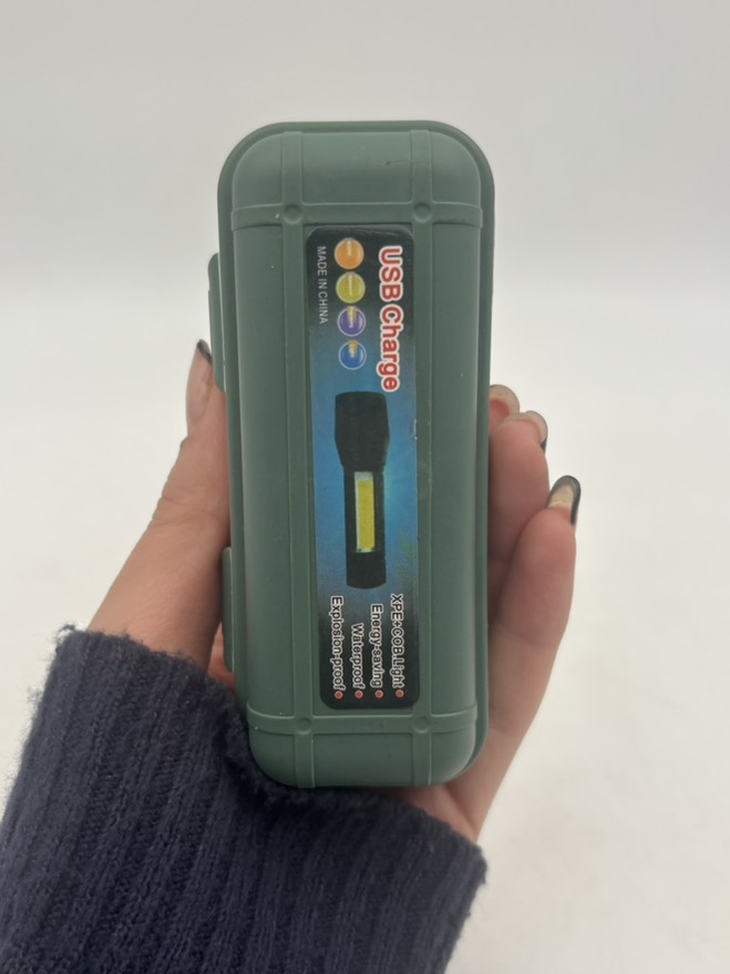 دارای یک گیره جهت اتصال چراغ قوه شارژی به لباس، کوله و …
